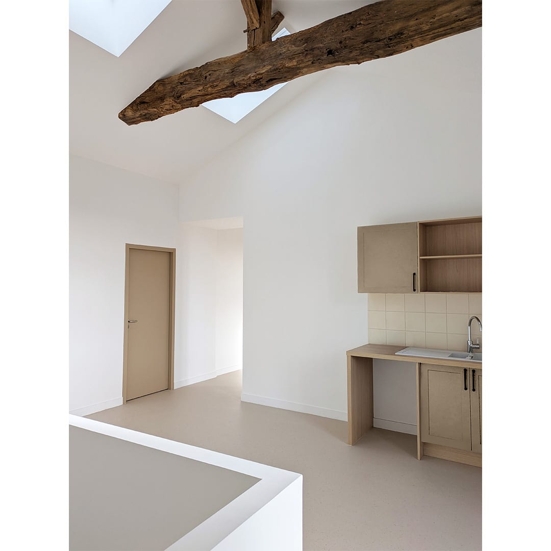 Soucieux de respecter la démarche d’exemplarité environnementale de la commune des Épesses, nous avons opté pour des solutions techniques écoresponsables. L’ensemble des isolants utilisés est biosourcé, garantissant un impact écologique raisonné. Les murs centenaires en moellons de pierre seront mis à nu, puis ré-enduits à la chaux naturelle afin de préserver la perspirance des bâtiments, leur permettant de traverser les décennies à venir. Les planchers et charpentes en bois, quant à eux, seront rénovés ou remplacés lorsque nécessaire, pour assurer la durabilité et la sécurité des structures.